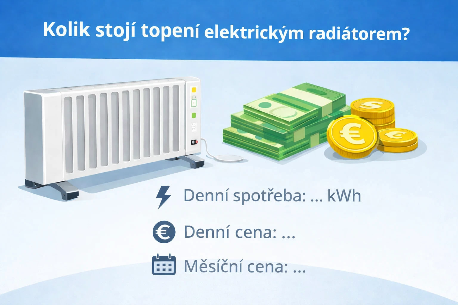 Náklady na vytápění elektrickým radiátorem závisí především na výkonu radiátoru, době topení a ceně elektřiny. Obecně lze říct, že radiátor s výkonem 1500 W, který topí přibližně 6 hodin denně, spotřebuje asi 9 kWh elektřiny denně.